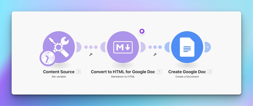 With this Make.com blueprint, you can seamlessly convert Markdown-formatted content into properly formatted Google Docs—no manual adjustments needed.